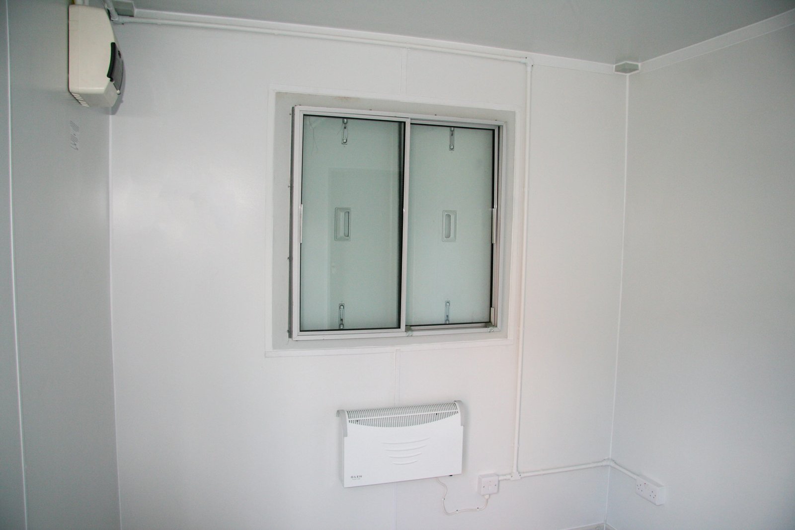 - Isolation thermique et phonique : Murs doublés de panneaux PIR de 25 mm et plafond PIR de 50 mm, recouverts d’un pli de vinyle de 3 mm.